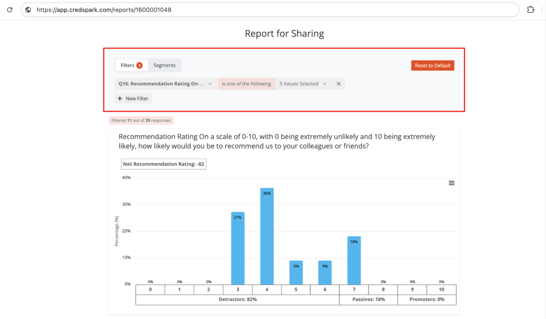 You can now choose to enable Filtering and Segmentation of Reports when sharing it with a 3rd party. This allows viewers to explore report data more deeply by narrowing results to specific answer choices and comparing data across different audience segments.