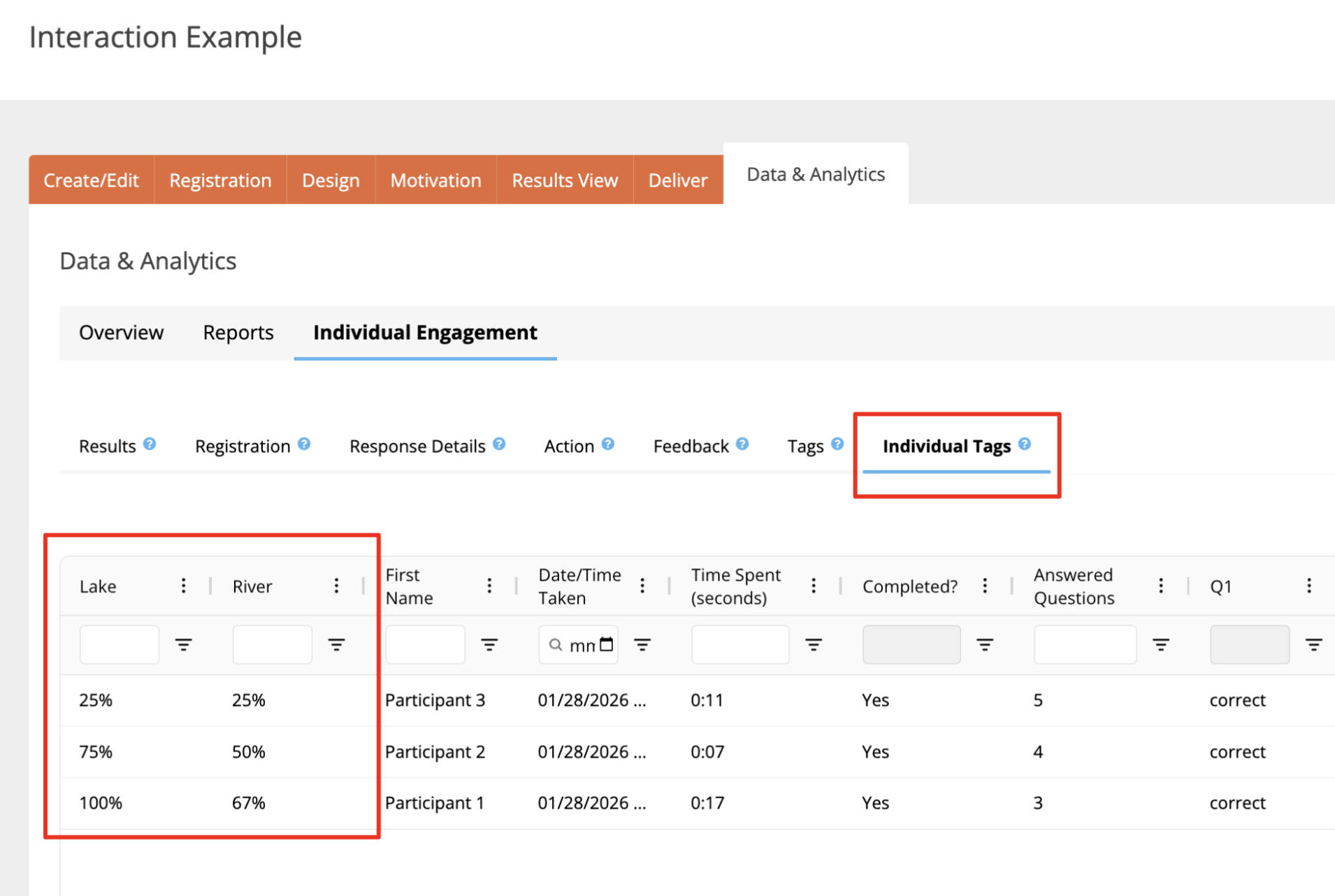We have added a new Individual Tags Report in Data & Analytics under Individual Engagement. This report shows which question tags are associated with each participant based on the questions they answered. Because tags are applied at the question level, it helps you understand how those tags map to individual participants.