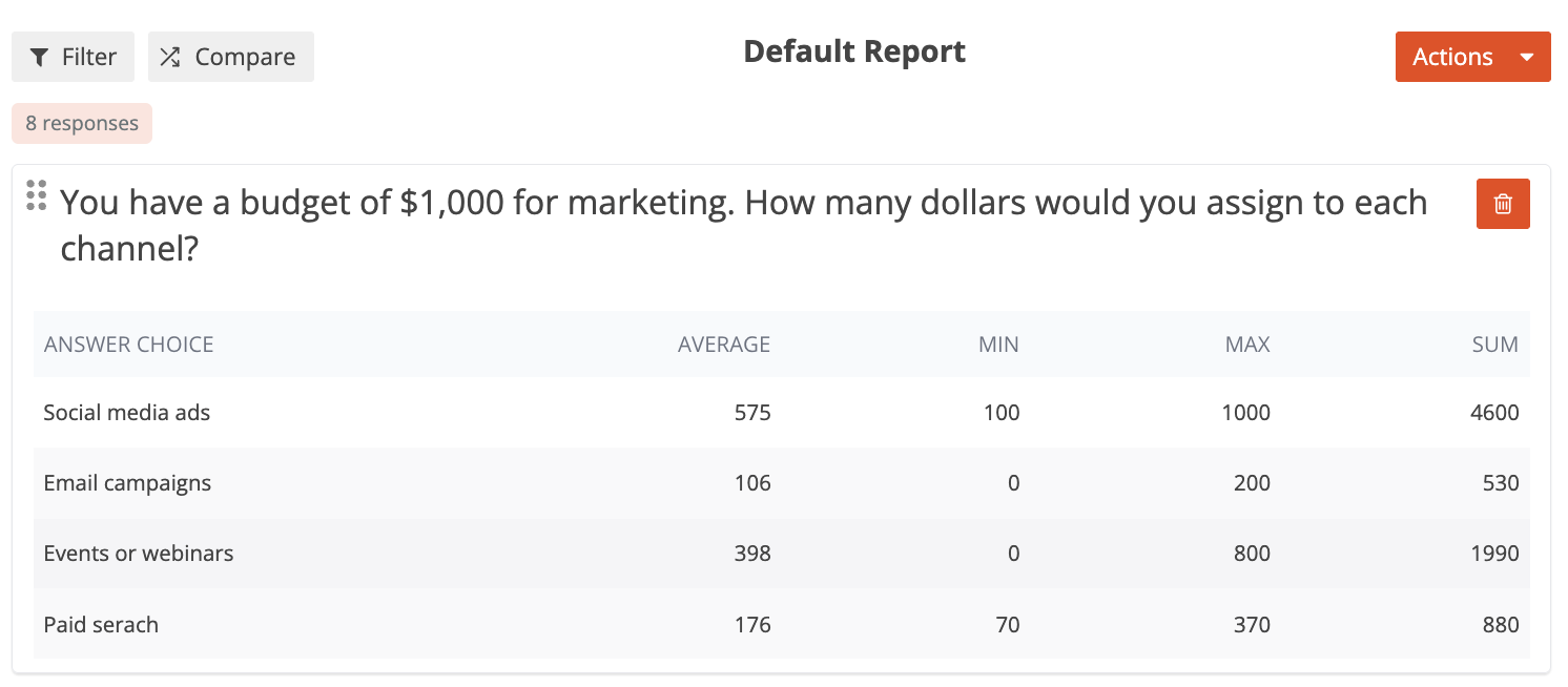• Sum - The total value entered for each answer choice.