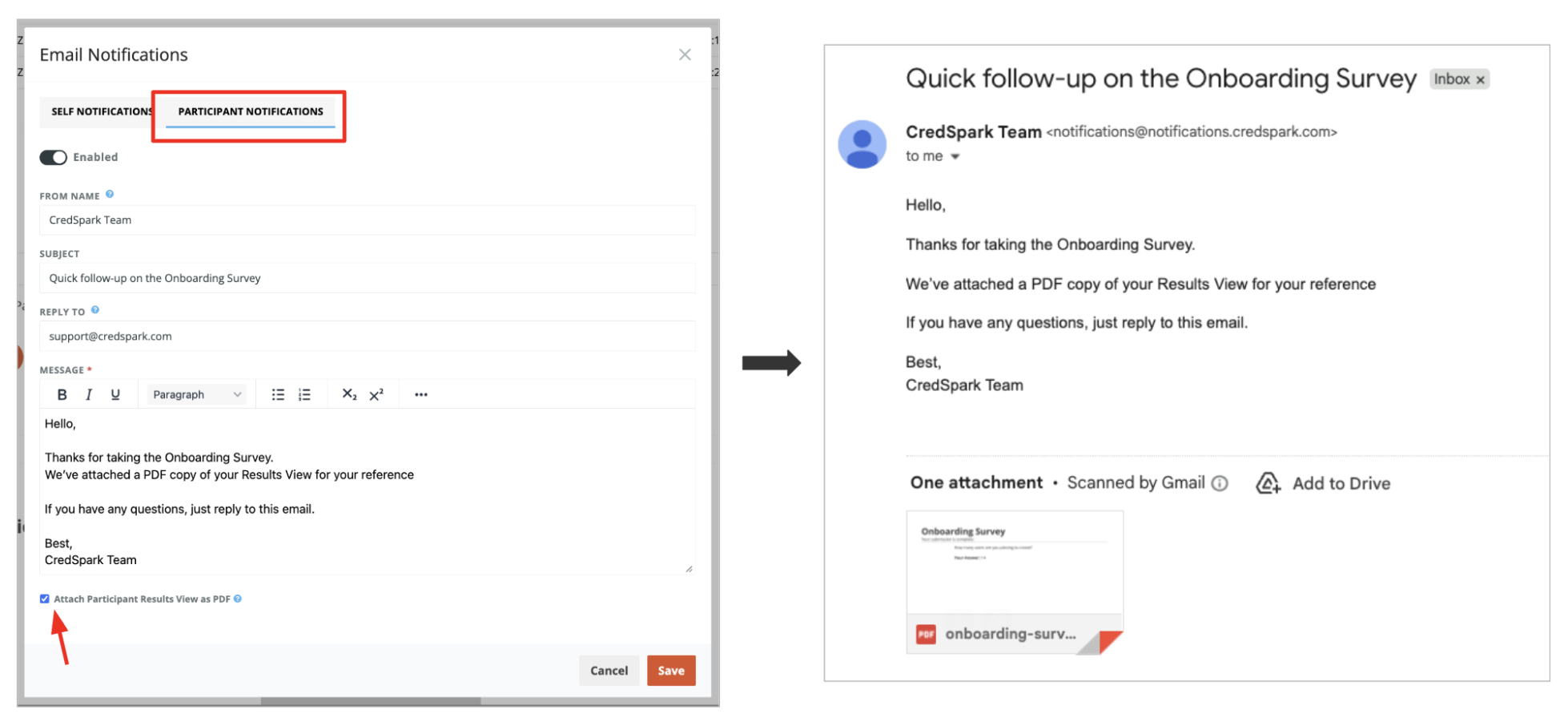 Include Results View as PDF in participant notification/email