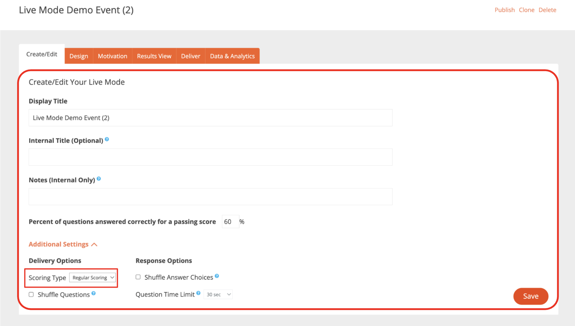 - Regular Scoring (default for new Live Mode interactions) - All scored questions are worth 1 point.