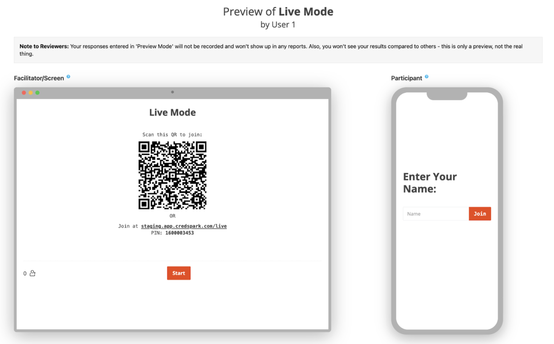 Here’s how Live Mode will appear for participants at the start when using the QR code: