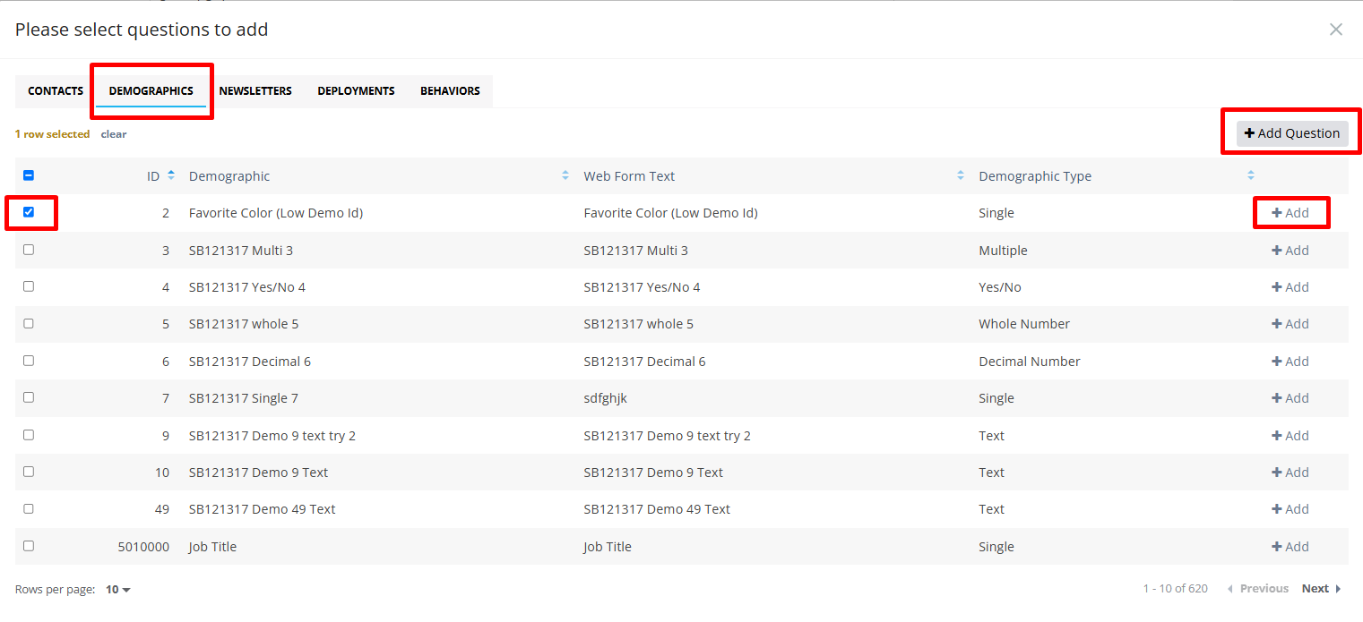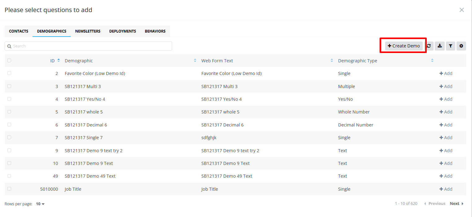 If you don’t see a needed demographic, click + Create Demographic (available to authorized users only).
