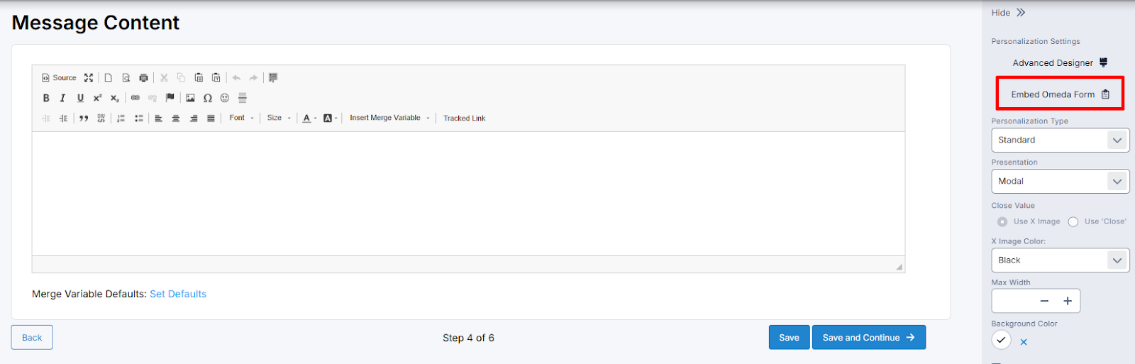 • Direct link – shareable URLs for quick access. Keep in mind that Omeda tracking does not work on direct links. This means we cannot pre-fill known questions or identify the user. To pass information to Omeda, you must include an email question in the direct link.