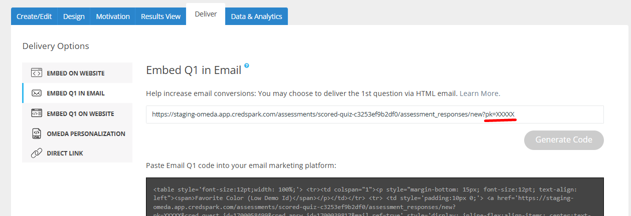 You can also use promo keys when embedding interactions via the Q1 Email feature. Whether you're sharing a direct link or embedding it within your website, blog, or other digital property, make sure to include the promo key value directly in the URL.